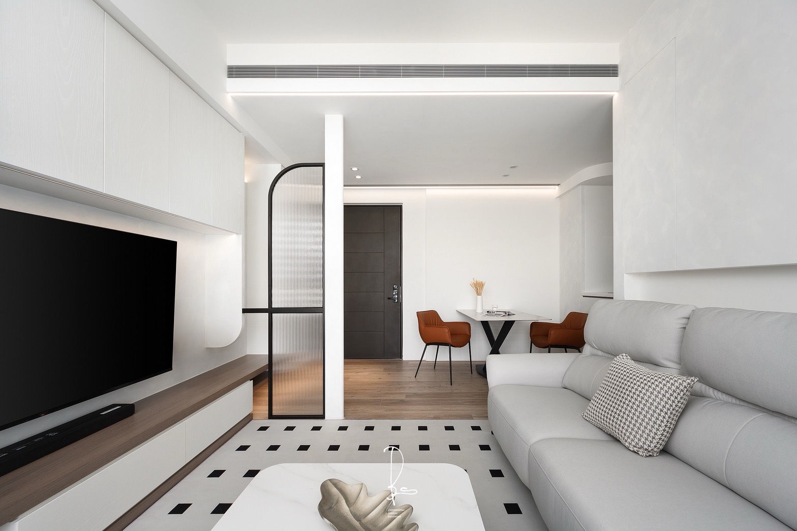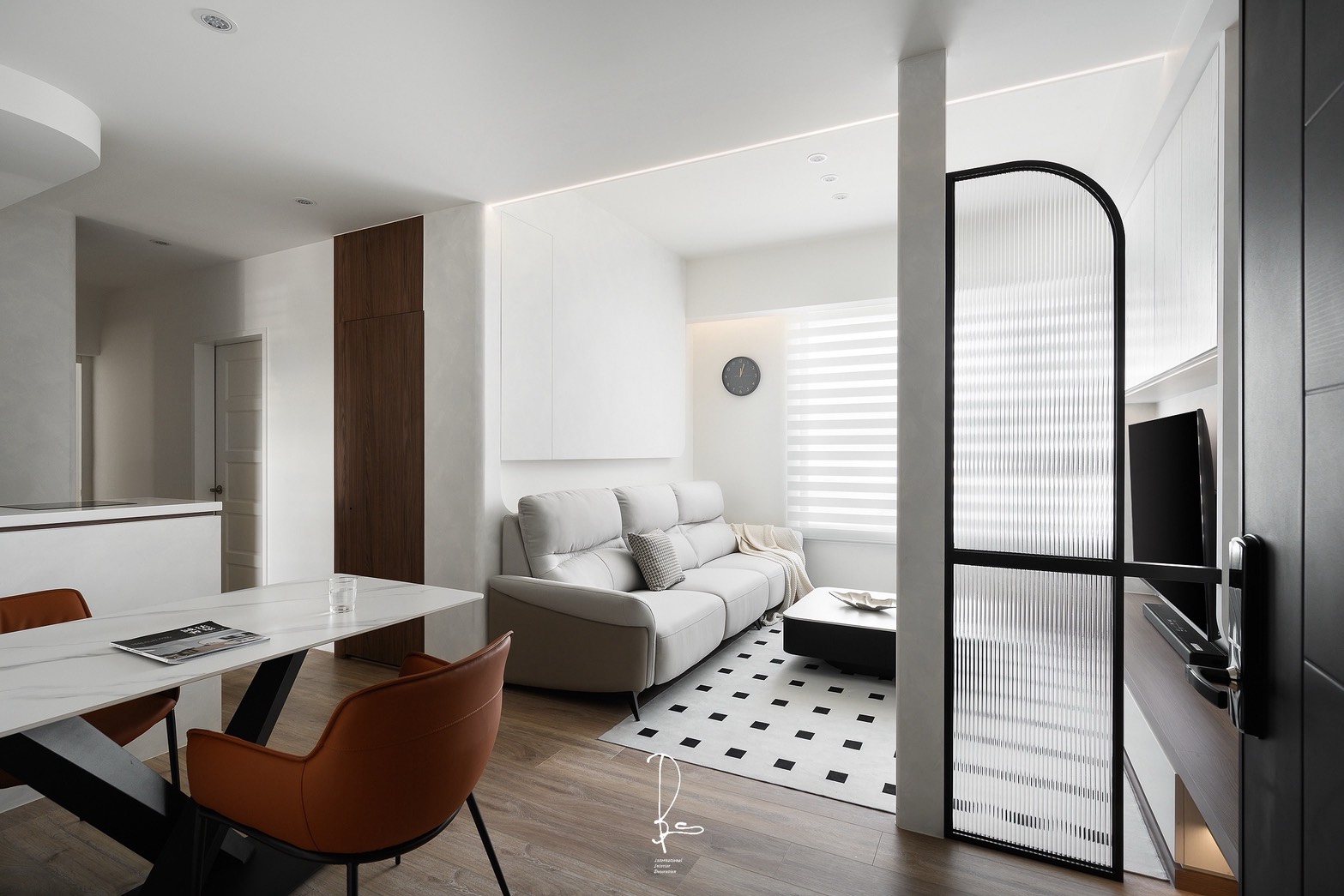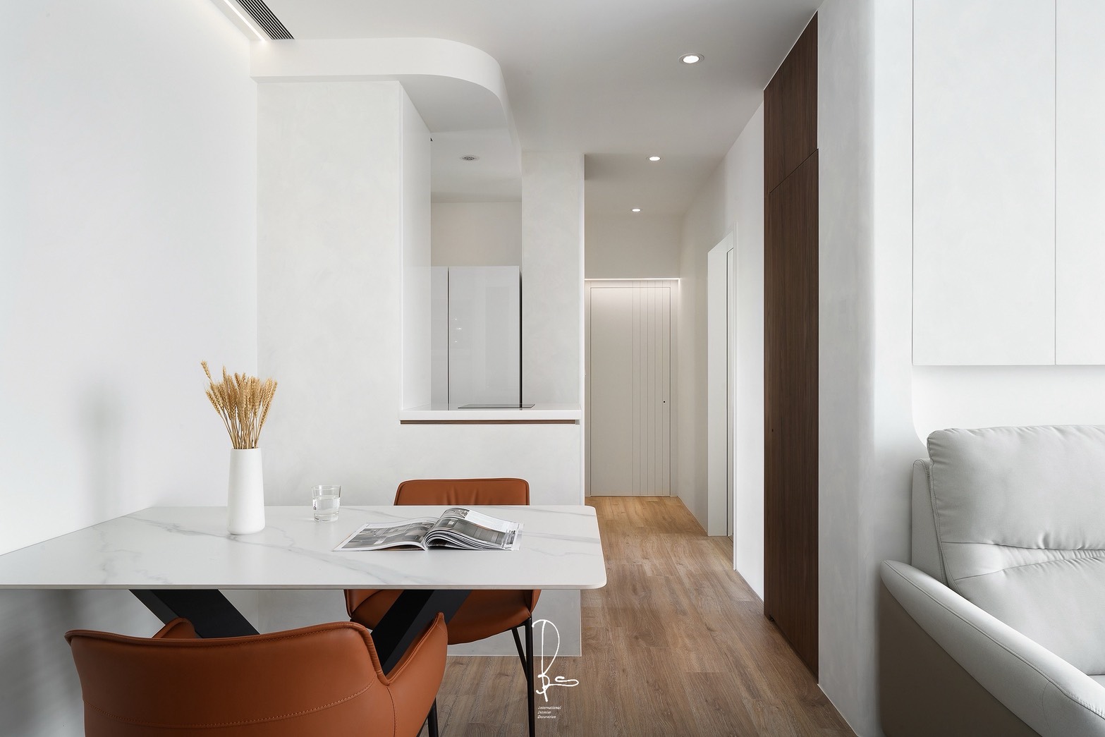 在微光甦醒的時刻,晨霧般的純白輕輕擁抱空間,為每一道光影留下呼吸的縫隙。溫潤的奶油色系,像是初晨的溫度,在侘寂的線條中,低語著關於日常的平靜。一抹木質的溫度,為冰冷的留白注入柔軟,遠方的林木,為歸來的人守住一盞溫暖的燈火。此處不需要繁複的點綴,因為「少」就是最純粹的豐盛,當日子慢慢行走於此,心,也能慢慢與自己對話。「晨霧」,是一種輕盈。